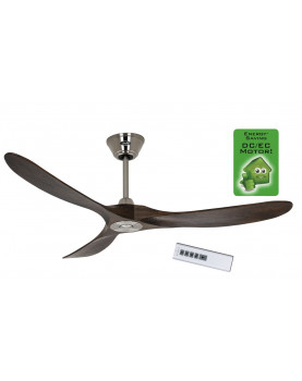 El ventilador de techo 315215 Eco Genuino tiene un diámetro de 152 cm, es adecuado para ambientes con un tamaño superior a 17,6 m2 y de una altura de 2,4 m - 2,8 m. Su funcionamiento es manejado por medio del control remoto incluido (con soporte a la pared). Desde el mando se controla su encendido, cambio de velocidades, la función inversa y el apagado. Este producto tiene 3 aspas de color madera natural.