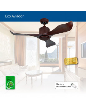 El ventilador de techo 312262 ECO Genuino-L tiene un diámetro de 122 cm, es adecuado para ambientes con un tamaño hasta a 16 m2 y de una altura de 2,4 m - 2,8 m. Su funcionamiento es manejado por medio del control remoto incluido (con soporte a la pared). Desde el mando se controla su encendido, cambio de velocidades, la función inversa y el apagado.