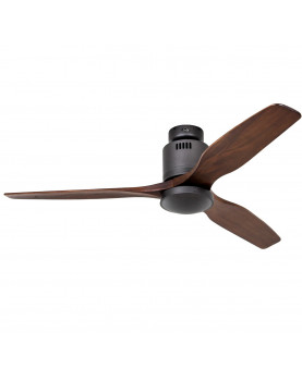 Este producto tiene 3 aspas de color negro, fabricadas en una sola pieza de madera maciza. Brindando un aspecto robusto y a su vez, decorativo. El motor, por su parte, es de cromo cepillado.