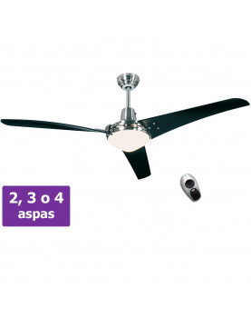 El ventilador para techo MACAU incluye de serie un cómodo mando a distancia, con el cúal se puede elegir entre cualquier de sus 3 velocidades distintas, que pueden llegar hasta las 184 r.p.m. Además, incluye un soporte a pared para poder dejar el mando en la pared. A su mayor velocidad, el ventilador puede llegar a consumir 57W, mientras que el consumo mínimo es de tan sólo 9 W.