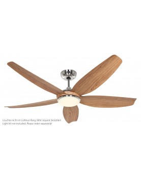 Estas lámparas con ventilador de techo están pensadas para estancias con un tamaño de a partir de los 25 m2 y de una altura de 2,4 m - 2,8 m. La luz se proyecta por medio de una lámpara con un diseño de semióvalo de cristal opaco, con 2 bombillas de 40 W máx. y con rosquilla E27 (no incluidas), lo que permite que también se puedan usar bombillas de bajo consumo. La distancia de las aspas con respecto al techo se puede variar entre 26 cm y 35 cm fácilmente sin perder la garantía. También se pueden emplar barras extensibles (se venden aparte) para cambiar tanto el tamaño como la apariencia de la barra.
